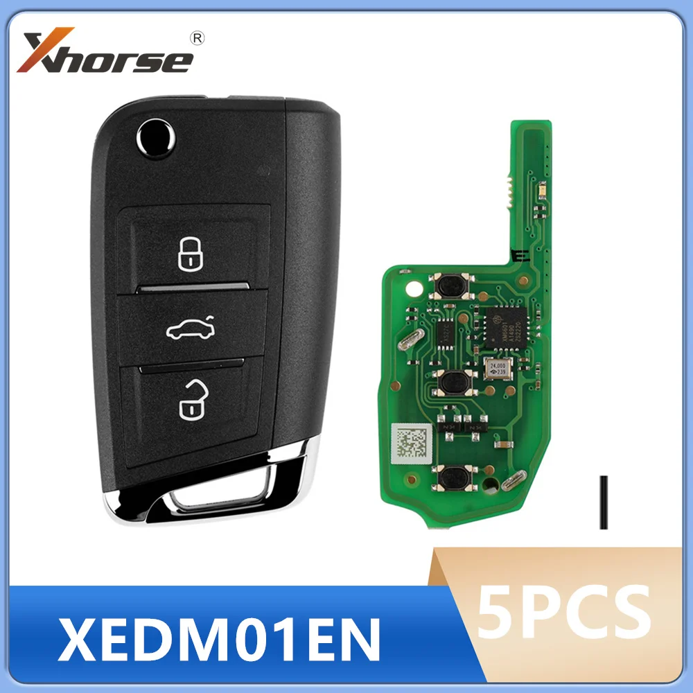 5PCS Xhorse XEDM01EN Super Remote Key MQB Style 3 Buttons Built-in Super Chip Replacement of XEMQB1EN