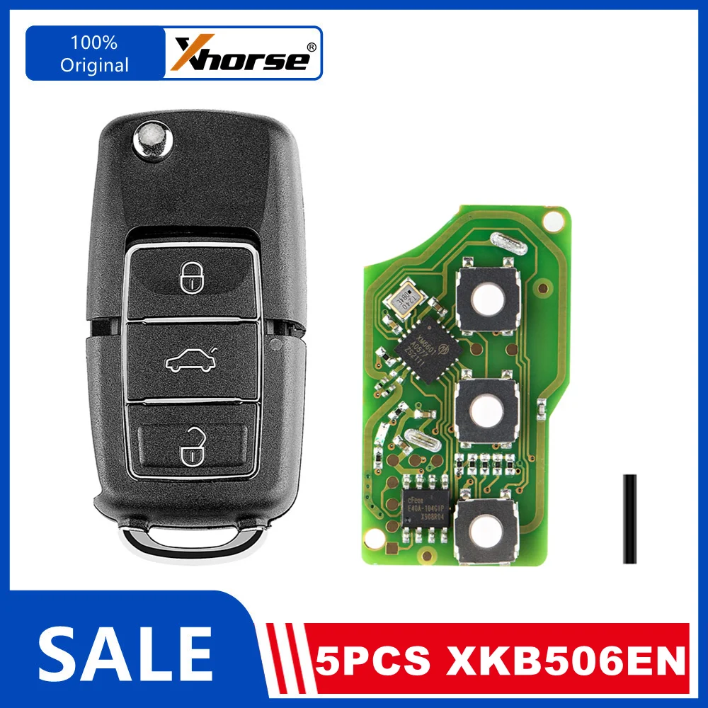 5 Piece XHORSE XKB506EN B5 Flip 3 Buttons XK Series Wire Remote Key Extreme Black