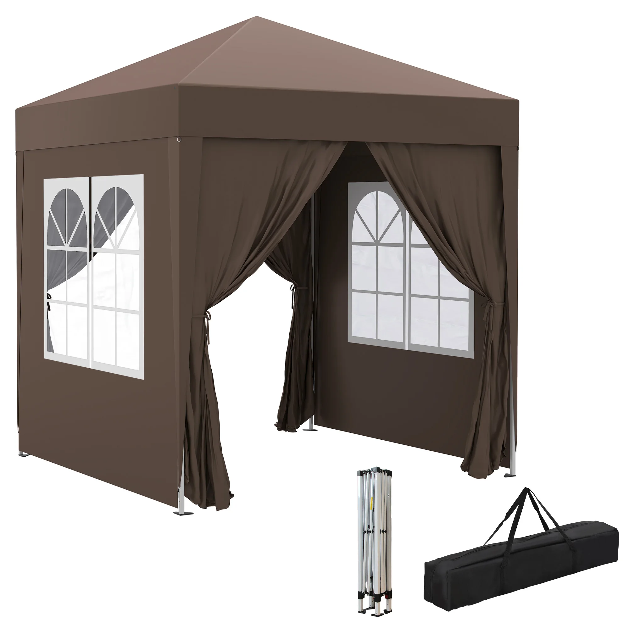 Outdoor Garden Arbor 2x2 m, pop-up folding Arbor, height adjustable, UV protection, steel frame, 4 sides removable, for camping, festival, beach, transport bag, Brown