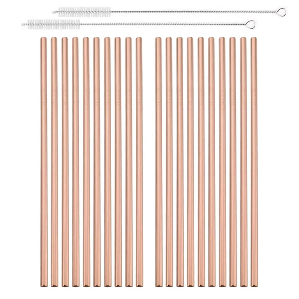 20Pcs Reusable Metal Straw Set Pipette Suction Stainless Steel Drinking Straws Pipe Straight Tube Events Party Bar Accessories