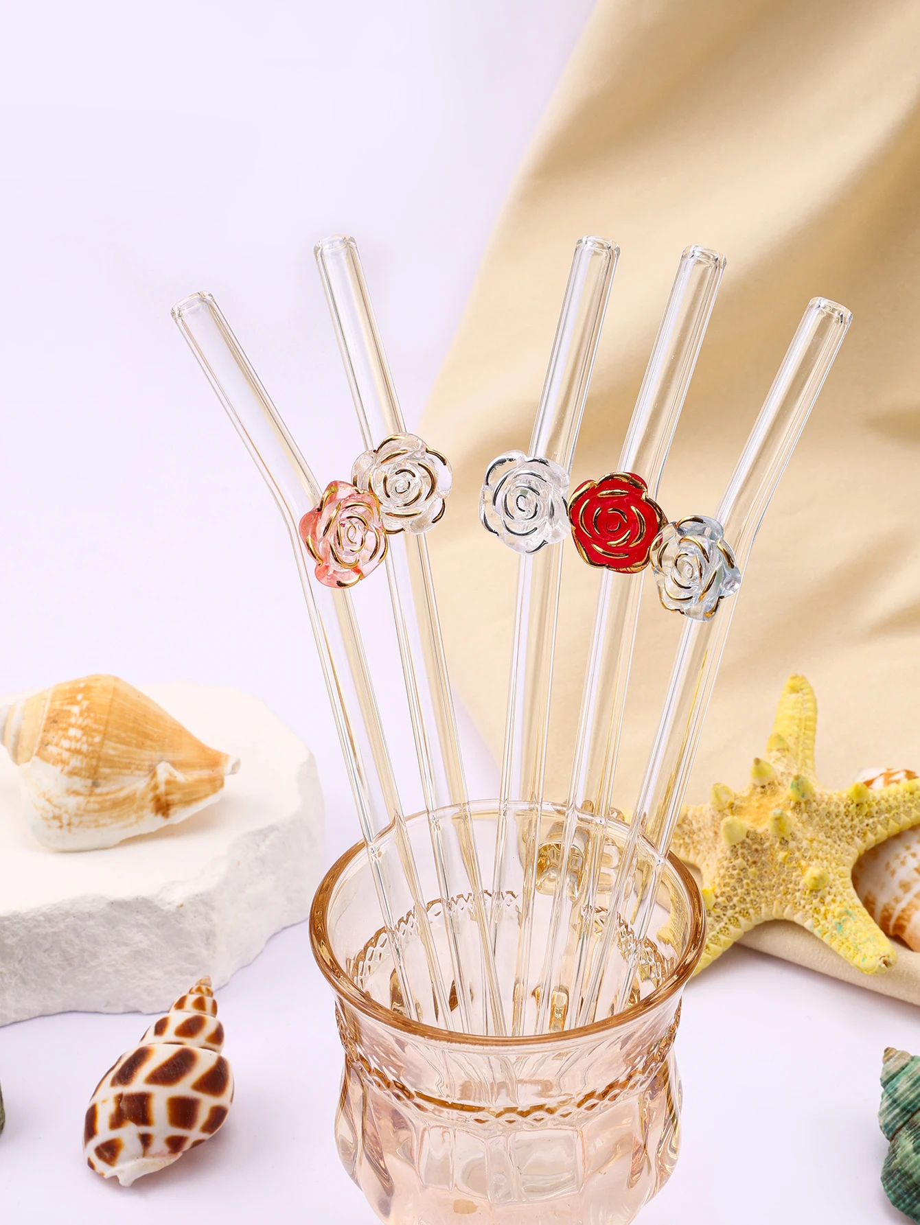 1/2/6PCS Iridescent 5-Color Rose Glass Straw, Elegant Reusable Bent Straw for Smoothies, Ideal for Cafes, Weddings & Celebration