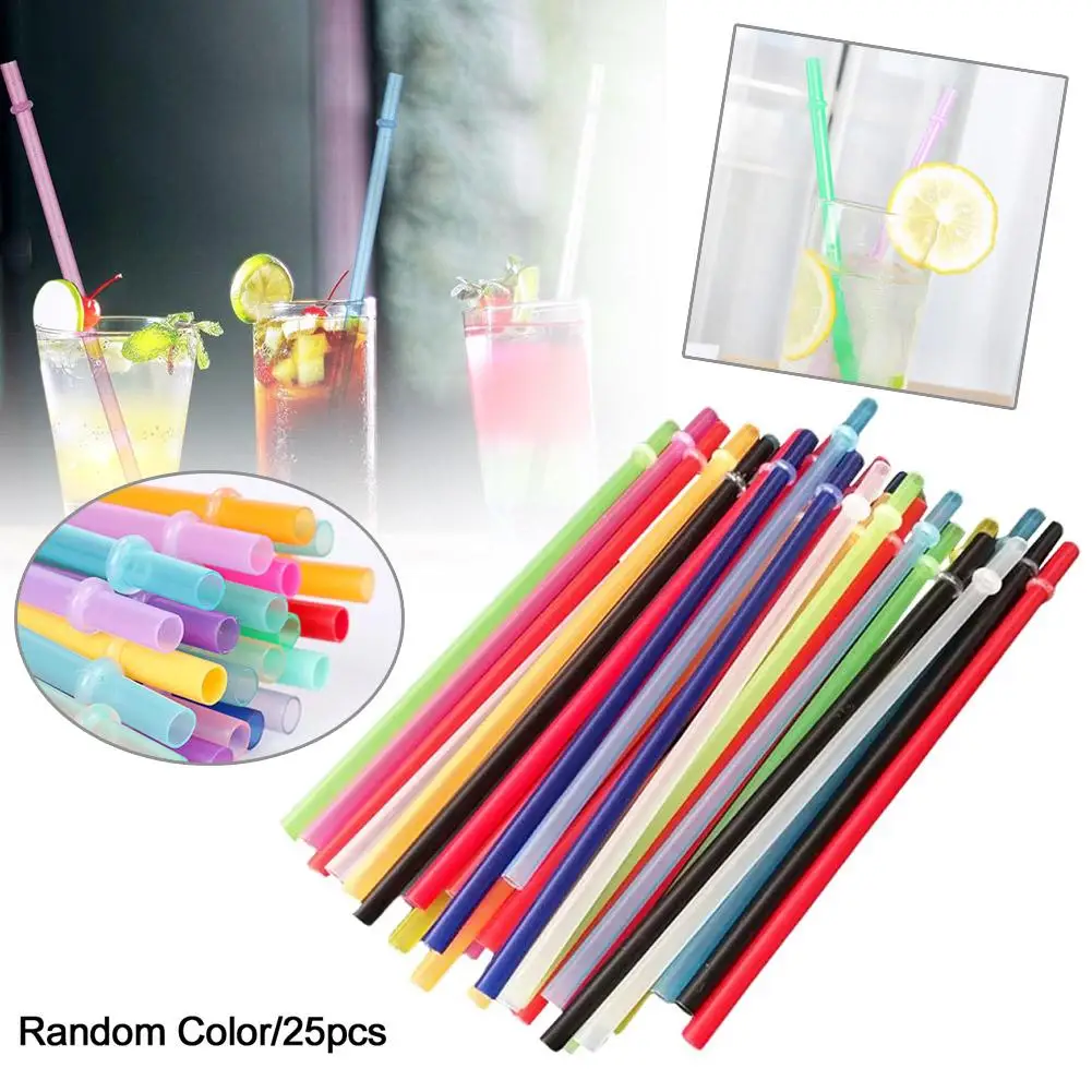 25Pcs Multicolor Solid Straws With Rings Rigid Straws Reusable Pp Straws Colorful Straws Home Partie Milk Juice Drinks