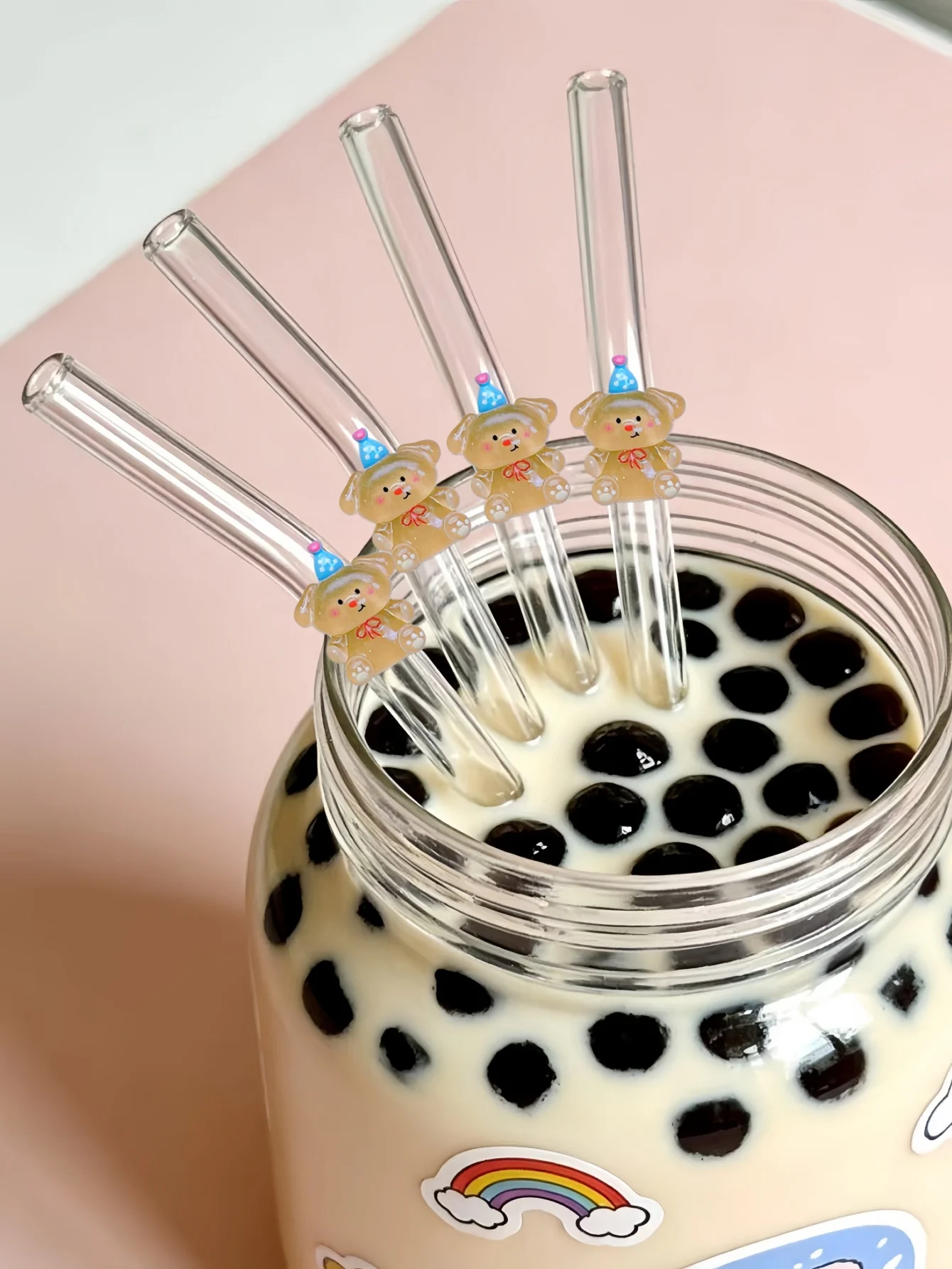 1/3/6PCS Reusable Glass Straw,Birthday Bear Decor. Perfect for parties, summer drinks, boho table decor. Durable, easy clean
