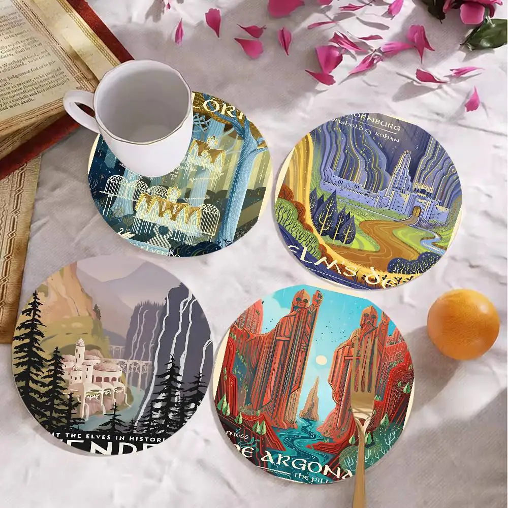 6pcs 4Inch Wooden Coaster Tea Coffee Cup Pad Heat Resistant Round Bowl Teapot Mat Wood Placemats Coasters for Home Kitchen Decor
