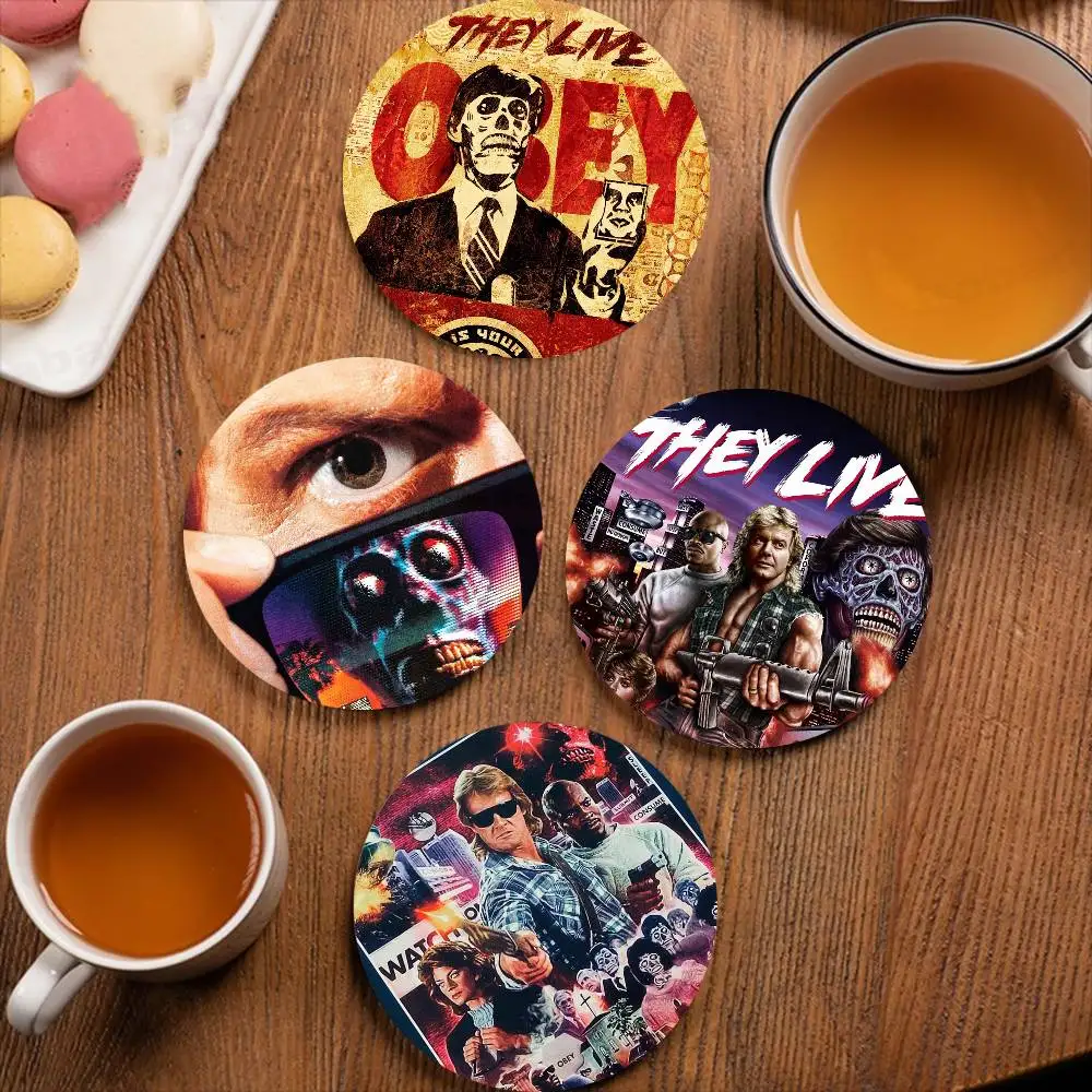 They Live Classic Movie John Carpenter Themed Wooden Coaster Non-Slip Heat-Resistant Fun Dining Table Decoration Cafe
