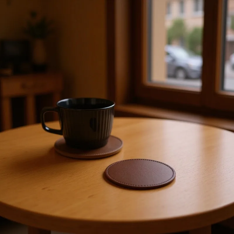 Leather Round Single-sided Waterproof Coasters, Heat-insulating Tea MATS and Anti-slip Bowl MATS