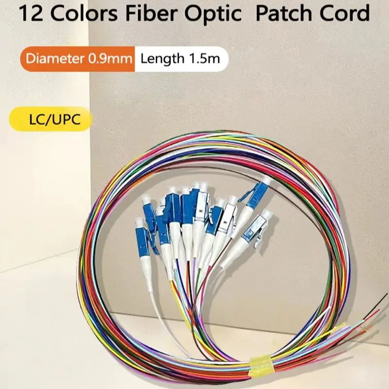 LC/UPC 12 Colors Fiber Optical Colorful Pigtail 0.9mm Single Fiber Optic Pigtail Single Mode 1.5M 12 Cores Fiber Pigtail