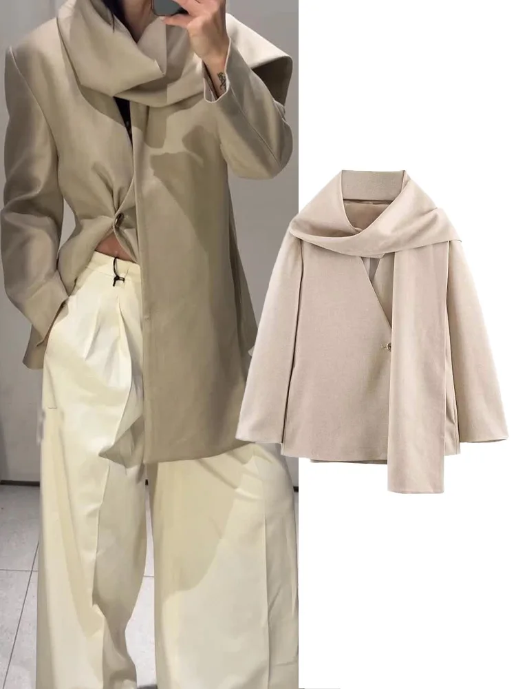 Bornladies Women's New Blazer Style Wool Coat Lapel Trendy Loose Fit Solid Color Autumn Winter Fashion Retro Jacket