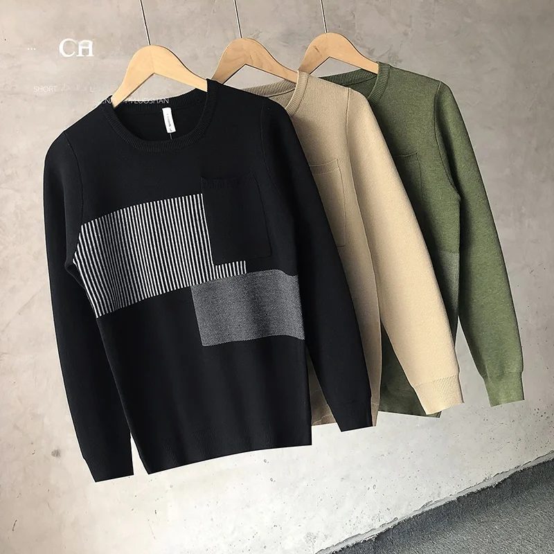 AIOPESON Spliced Cotton Sweater Men Casual O-neck High Quality Pullover Knitted Sweaters Male New Winter Brand Mens Sweaters