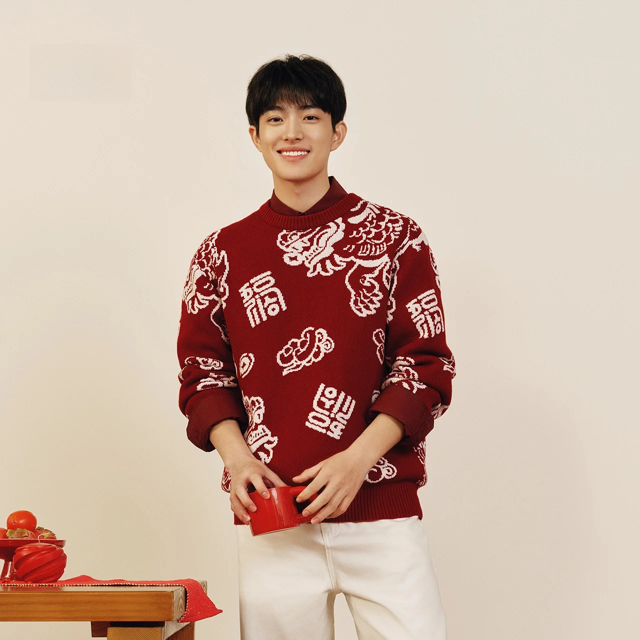 Semir Men's Knitted Sweater Loose Casual Couple's Knitwear Floral Embroidery Spring Autumn Wear Comfortable Medium Thick