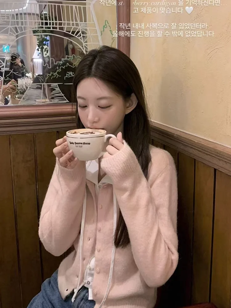 HULIUMI Official Zaenio Girl's Gentle Knitted Wool Open Cardigan Long Sleeve Pure Color Button Front Women's Knitwear