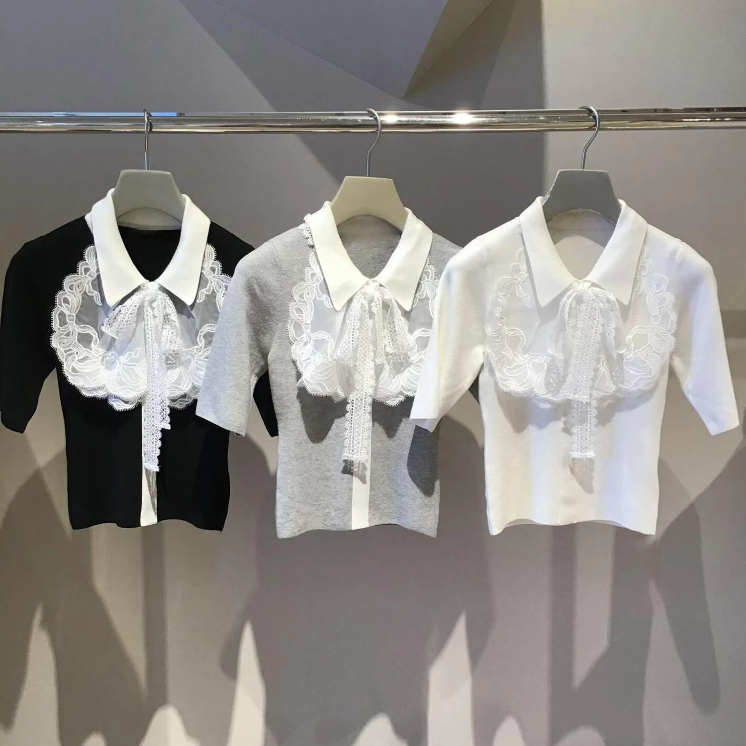 Spring 2026 Slim Fit Knitted Sweater Women's Premium Embroidered Lace Collar Jie Style Casual Fashion mid Thickness Knitwear