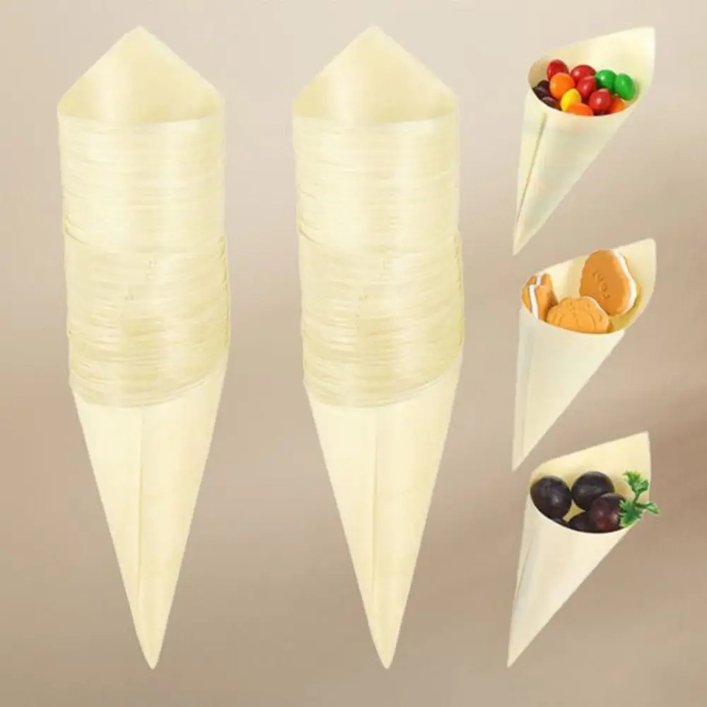 50PCS Wooden Ice Cream Cone Cup Multi-size Cone Shaped Bull Horn Cup Plating Decoration Multi-purpose French Fry Packaging Box