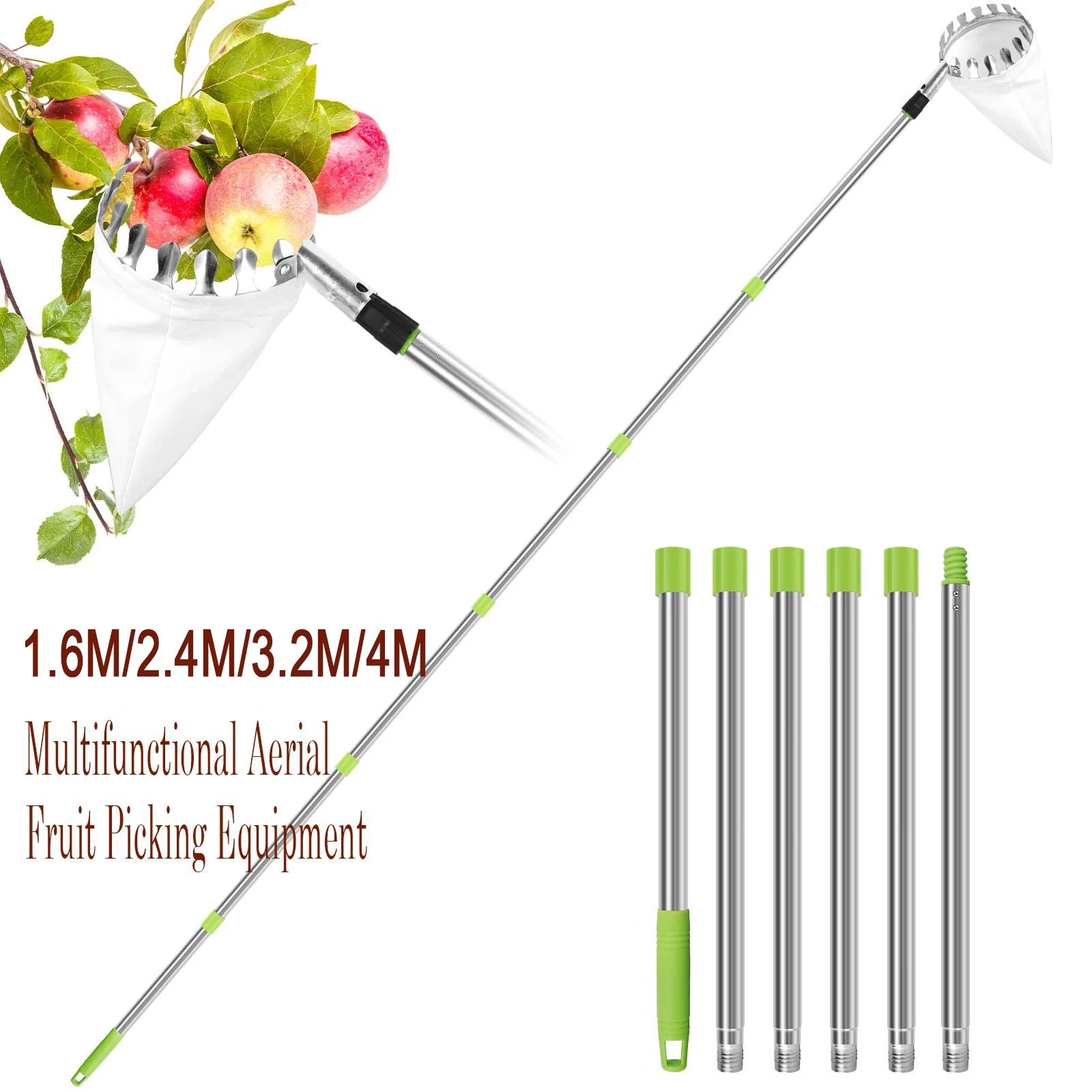 1.6-4M Fruit Picker Tool Metal Cherry Picker Tool Telescopic Pole Fruit Picker Basket Harvester Garden Hardware Tools for Apples