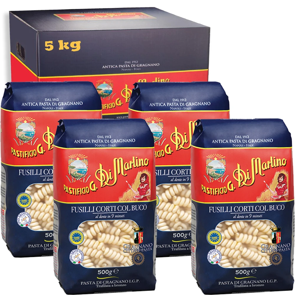 Fusilli Corti With Hole | 5kg Maxi Size | Antique Gragnano Paste Igp | Pastificio Di Martino | Pack 10 Pieces of 500Gr | Excellence of Campania | 100% Italian Wheat | Gift
