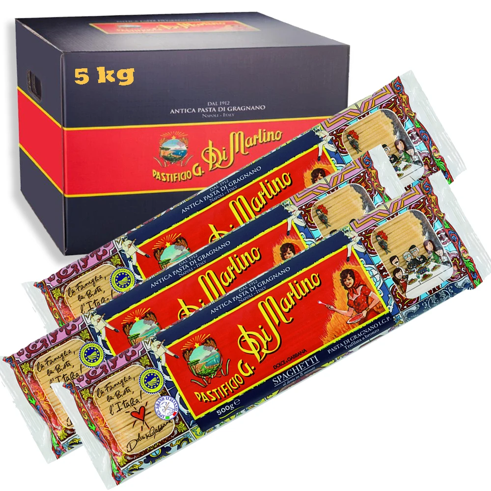 Spaghetti | 5kg Maxi Format | Antique Gragnano Paste Igp | Pastificio Di Martino | Pack 10 Pieces of 500Gr | Excellence of Campania | 100% Italian Wheat | Gift