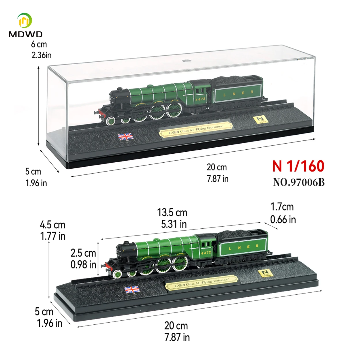 N Scale Model Railroad Locomotive with Base And Dustproof Display Case - Static Plastic Model Trains for Collectors
