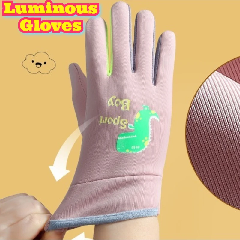Glow The Dark Cartoon Gloves Cycling Winter Outdoor Sports Youth Boy Girls Windproof Thermal Gloves Unisex Cold Weather Handwear