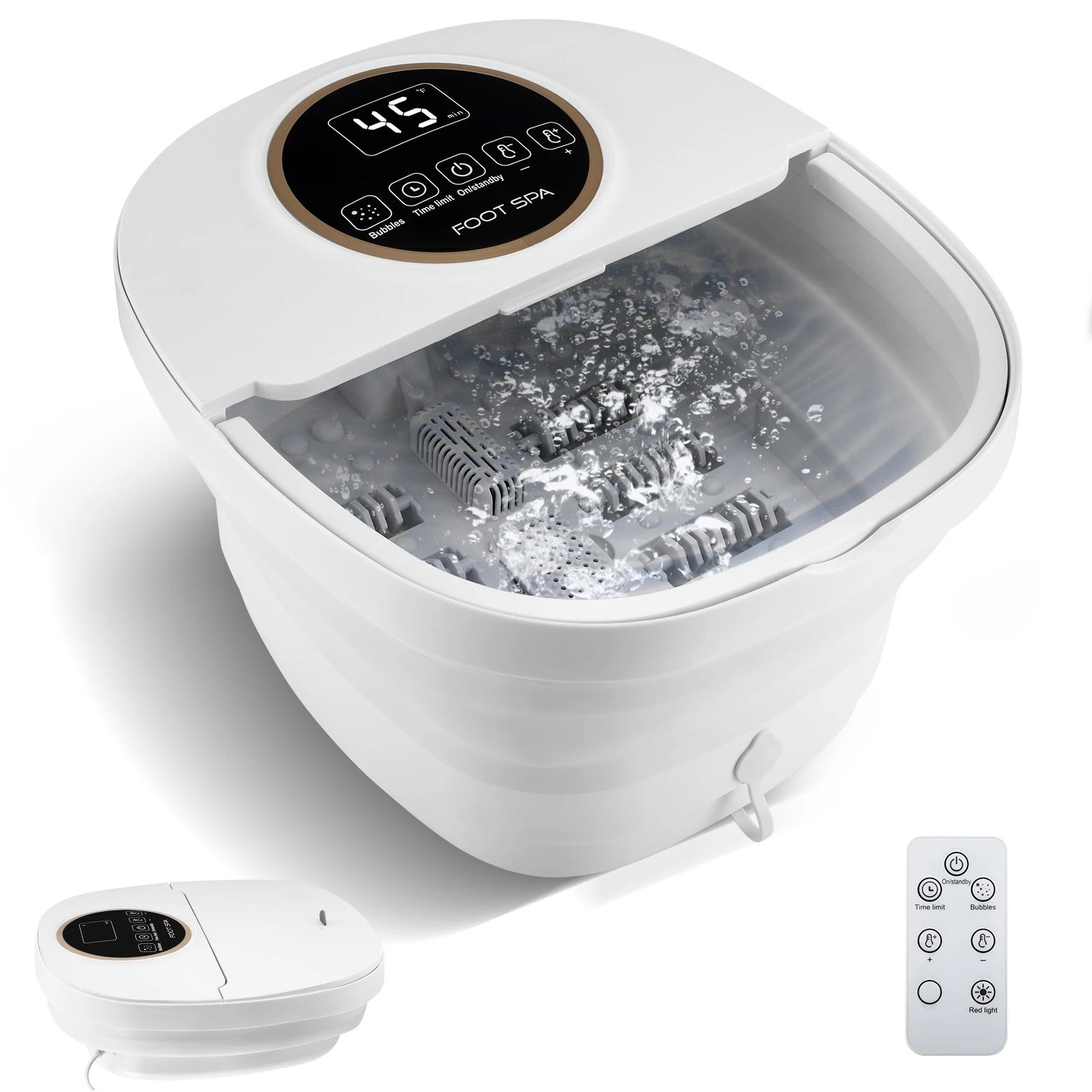 Foot Bubble Bath With Massage And Heating Function, Foldable Foot Massager, Heat Function, Foot Reflex Zones Massage, Timer