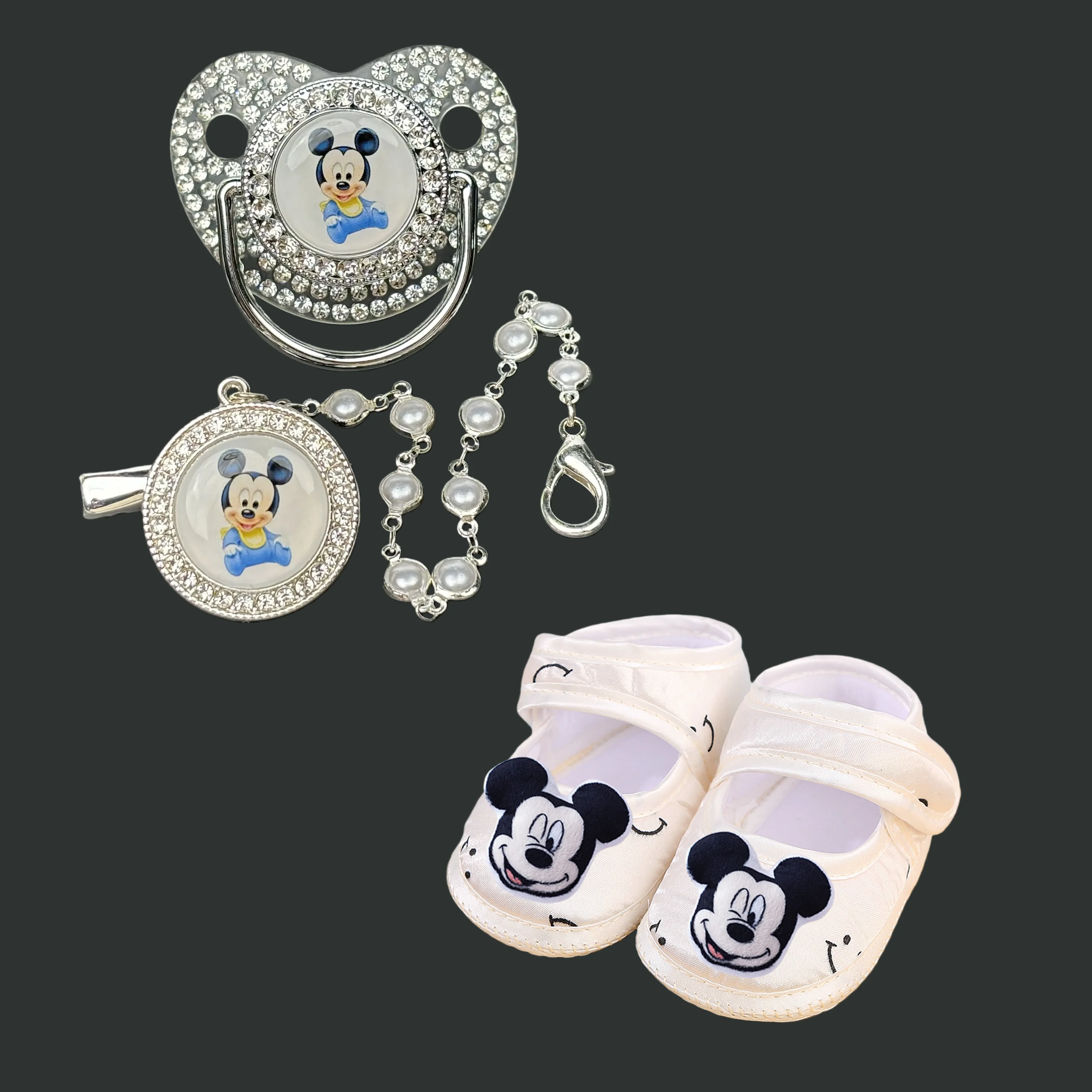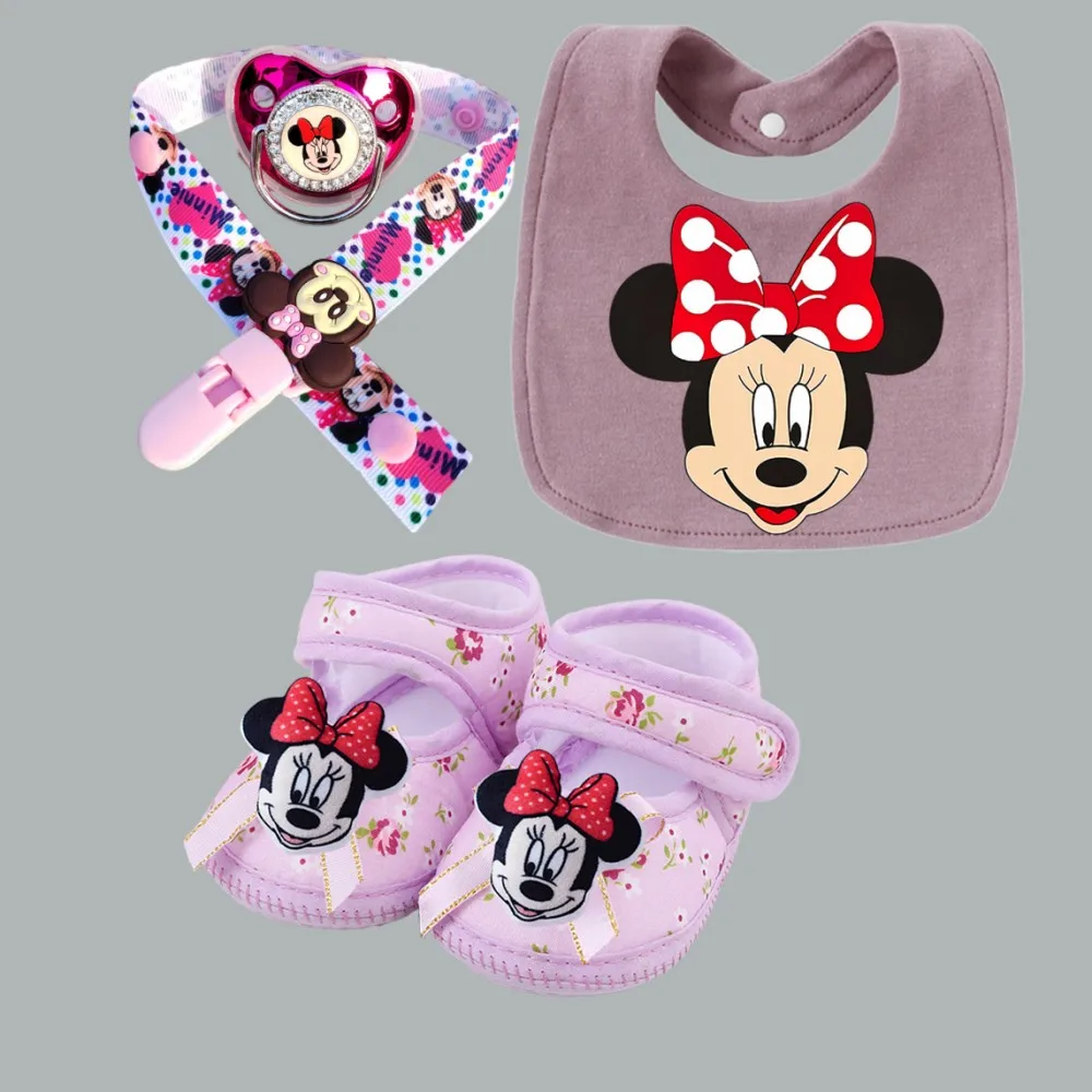 Baby nipple clip chain cute shoes with baby nipples Minnie Mouse baby bib baby nipple holder baby teething toy set newborn set