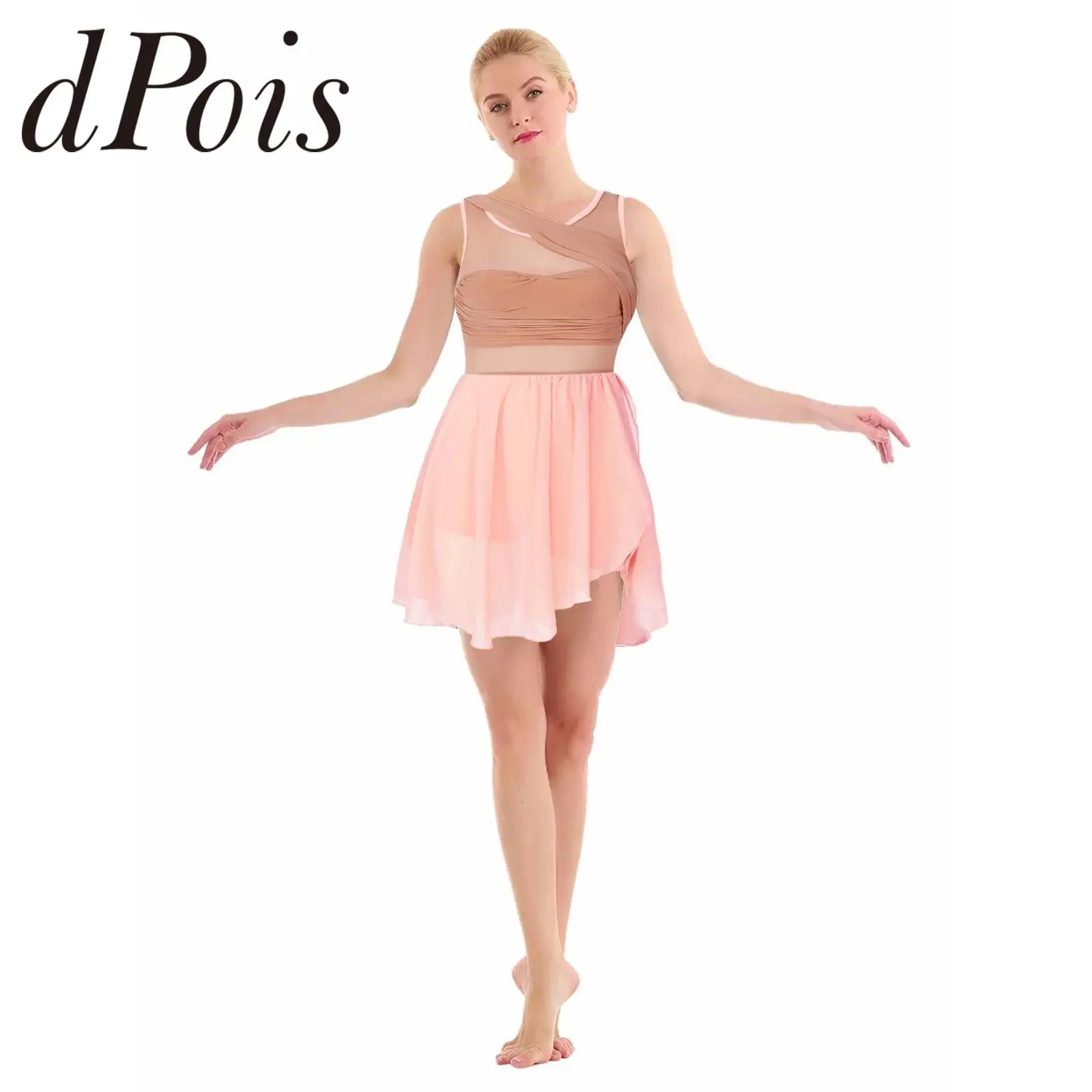 Adult Ice Skating Dress Women Sleeveless Chiffon Lyrical Dance Costumes Ballet Tutu Gymnastics Leotard Modren Dance Dress