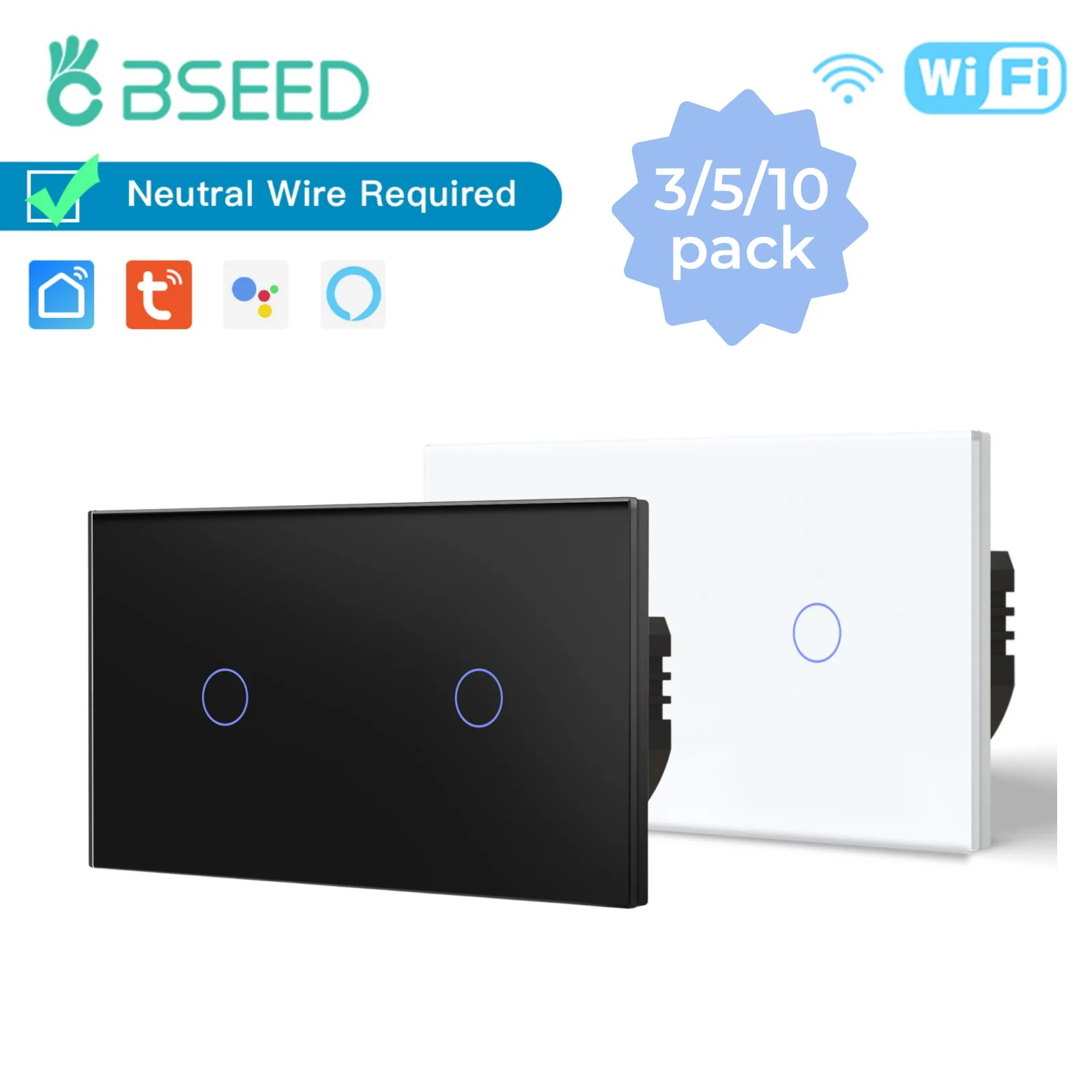 BSEED WIFI Double Light Switches 2 Gang 1/2/3 Way Wireless Touch Sensor Wall Switches Google Alexa Smart Life App Control