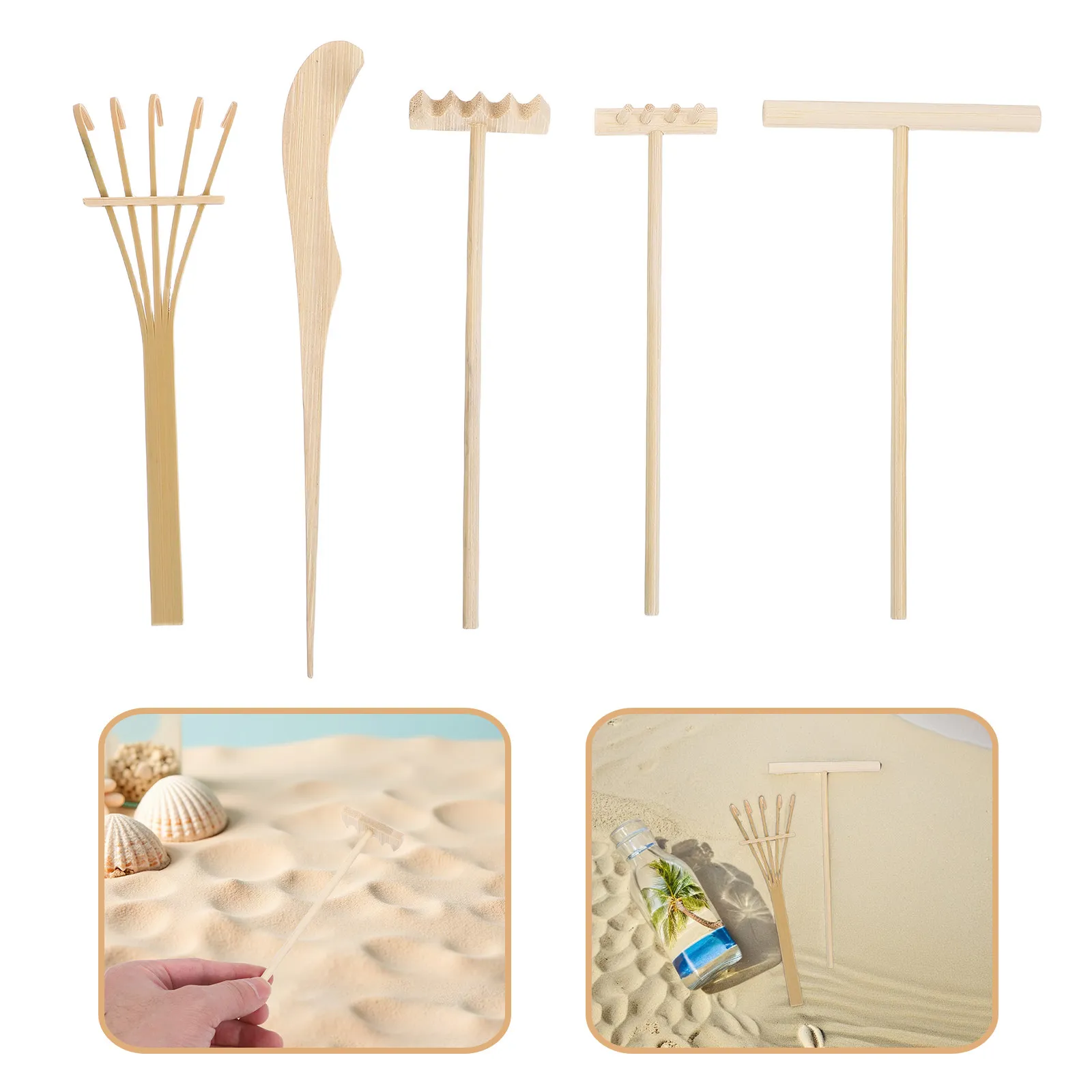 5Pcs Mini Sand Rake Bamboo Zen Tools Creative Japanese Sand Garden Accessories Meditation Art Sandbox Drawing Pen
