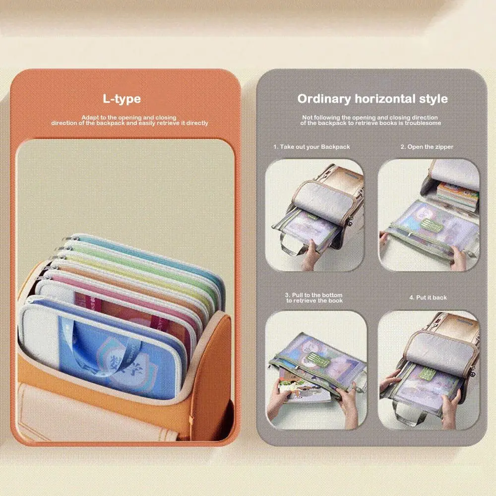 Large Capacity File Bag Horizontal Style Opening Mesh Mesh Zipper Bag Waterproof L-Shaped File Organizer Office Supplies