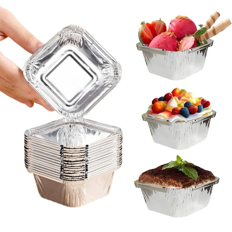 Aluminum Foil Baking Cups with Lids Heart and Rectangle Shaped Disposable Cake Containers for Cupcakes Muffins Pies Desserts
