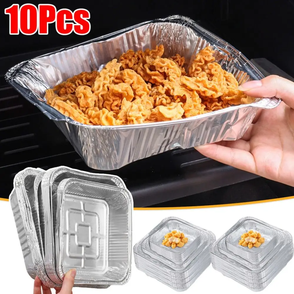 10Pcs 6/7/8 Inch Food Tin Foil Tray Non-stick Oven BBQ Baking Tools Aluminum Foil Box Reusable Oil-resistant Air Fryer Tray