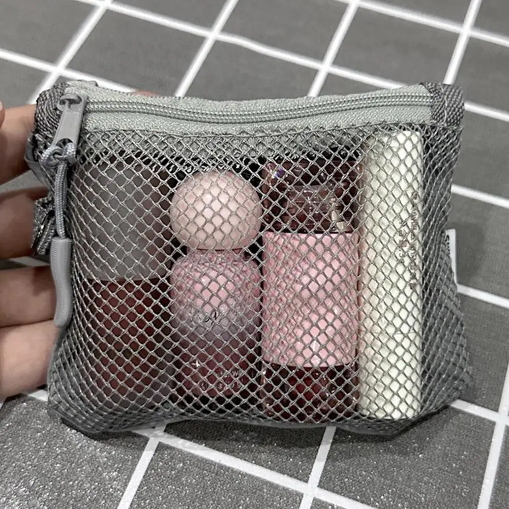 New Travel Makeup Storage Bags Mesh Coin Purse Simple Portable Mini Bag Multi-purpose Square Bag Double-layer Zipper Card Holder