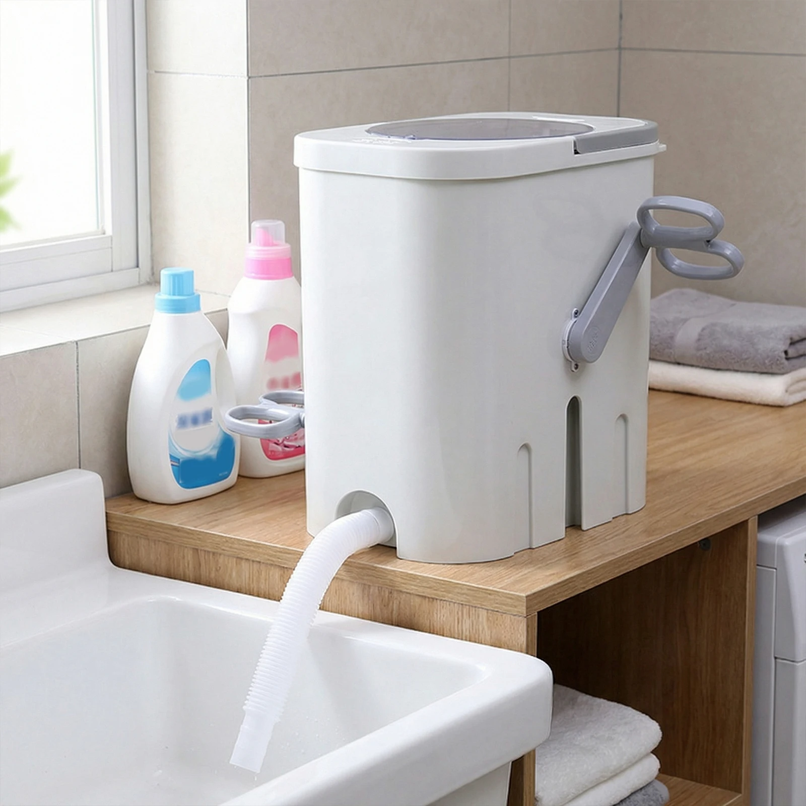Portable Mini Washing Machine with Drain Hose Compact Hand Crank Foot Pedal Rotary Washer for Dormitories Apartments Camping