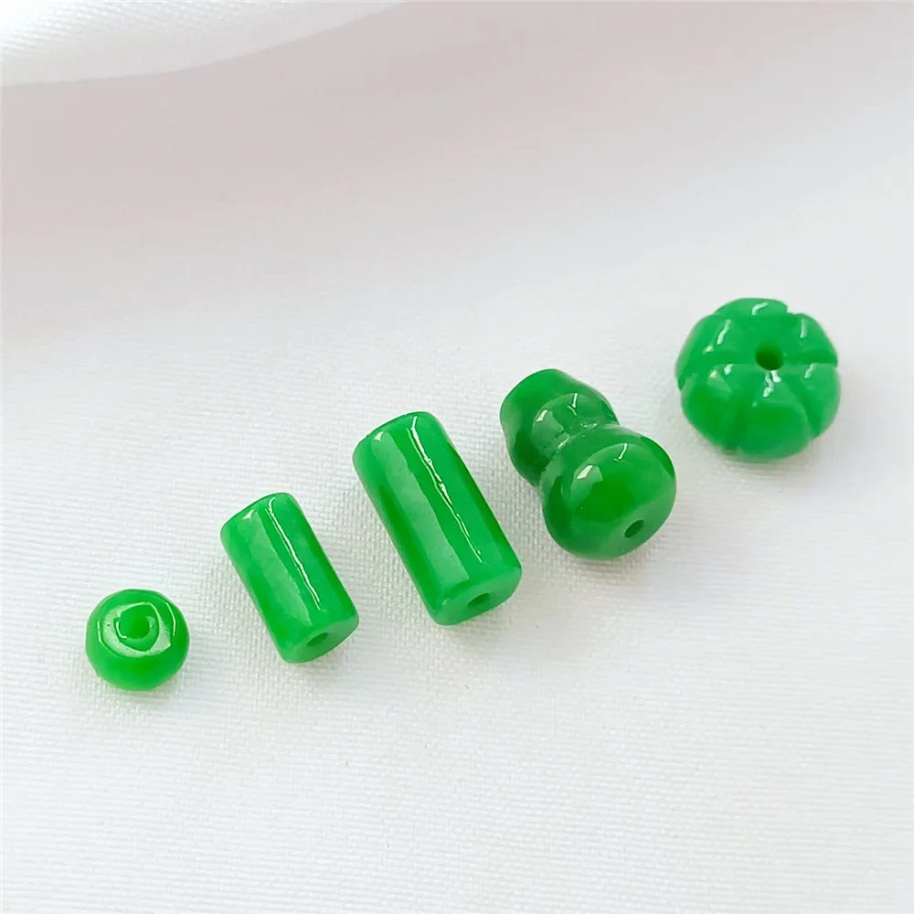Natural Stone Green Gourd Pumpkin Spacer Beads Cylindrical Bucket Beads Diy Spacer Gasket Bracelet Necklace String Accessory
