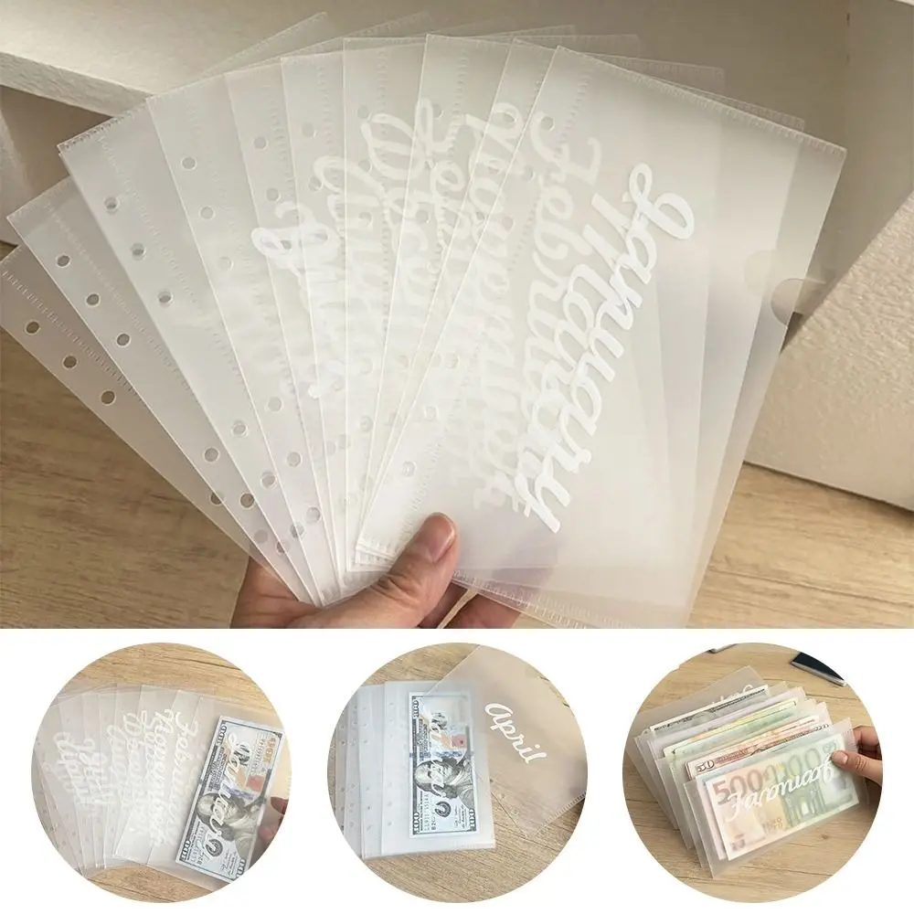 Creative 12 Monthly Cash Storage Bag A6 Transparent Cash Management Book 6 Holes PP Money Organizer Gift