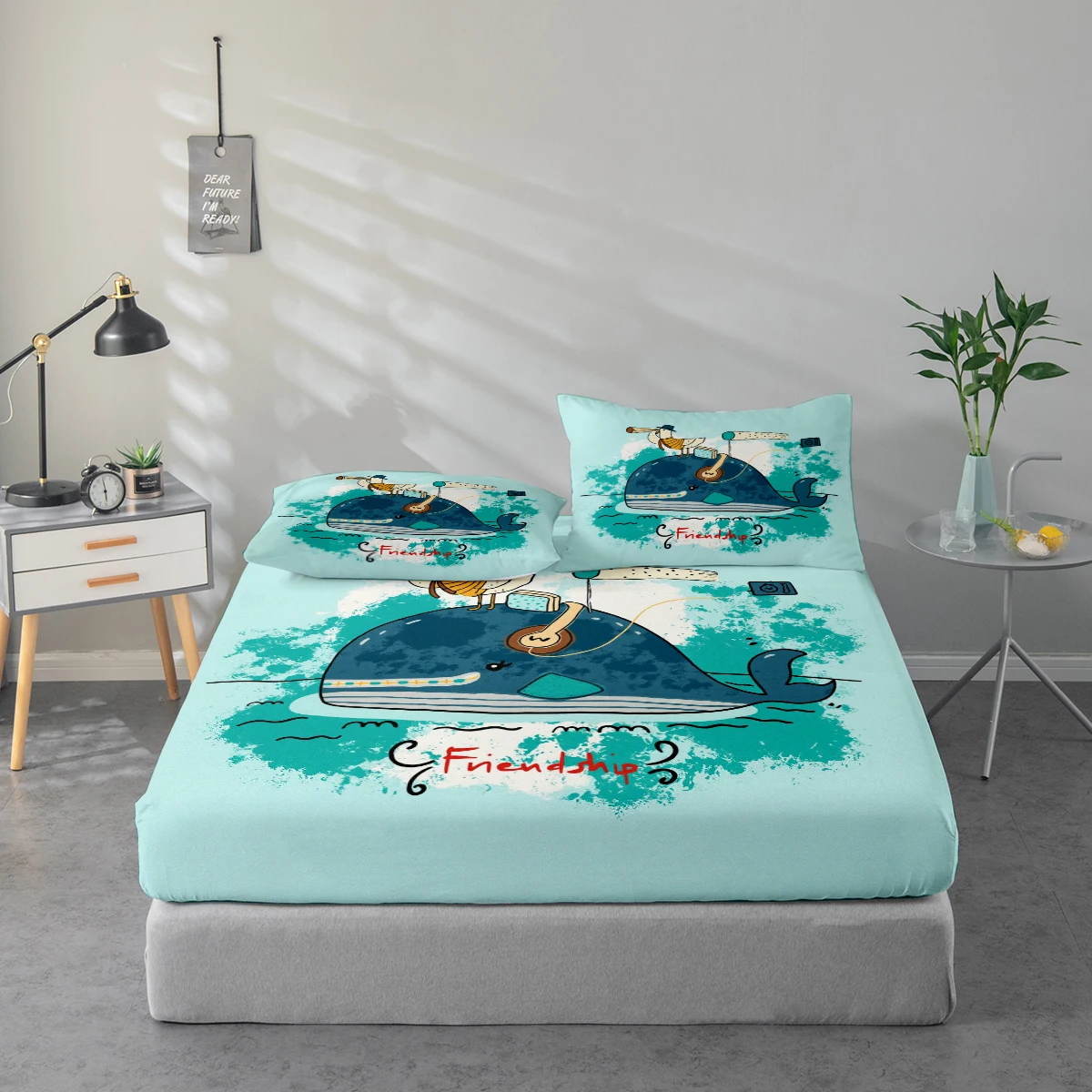 Bedding Set with Cartoon Print of Friendship Theme, Mattress Protector and Pillowcase Combination. High-Definition Printed Bed Sheet Set Includes 1 Fitted Sheet + 1 or 2 Pillowcases (60*100cm and 72*132cm Are 1 Pillowcase, the Rest of the Sizes Are 2 Pillowcases). Suitable for Bedroom and Guest Room, Ultra-Soft Polyester Bedding, Machine Washable, Can Be Used in All Seasons