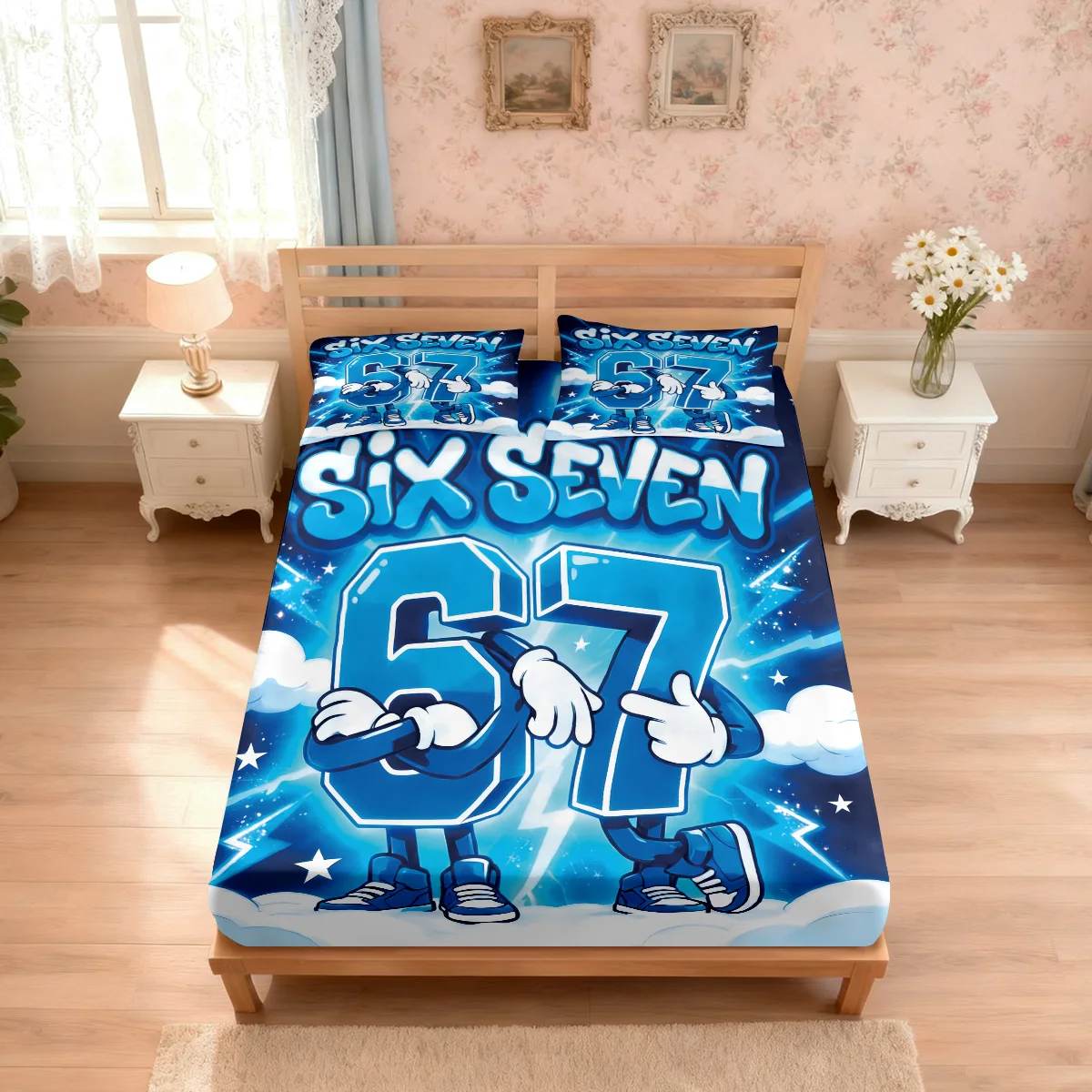 3pcs Cartoon Funny 67 Element Printed Coreless Bedsheet Set, Multi Size Comfortable Bedspread, Bedroom Bedding Decoration