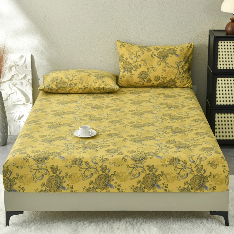 Boho Floral Fitted Sheet with Deep Pocket, Botanical Vine Flower Bed Sheet Set, Farmhouse Bed Cover with 2 Pillowcase Twin Queen