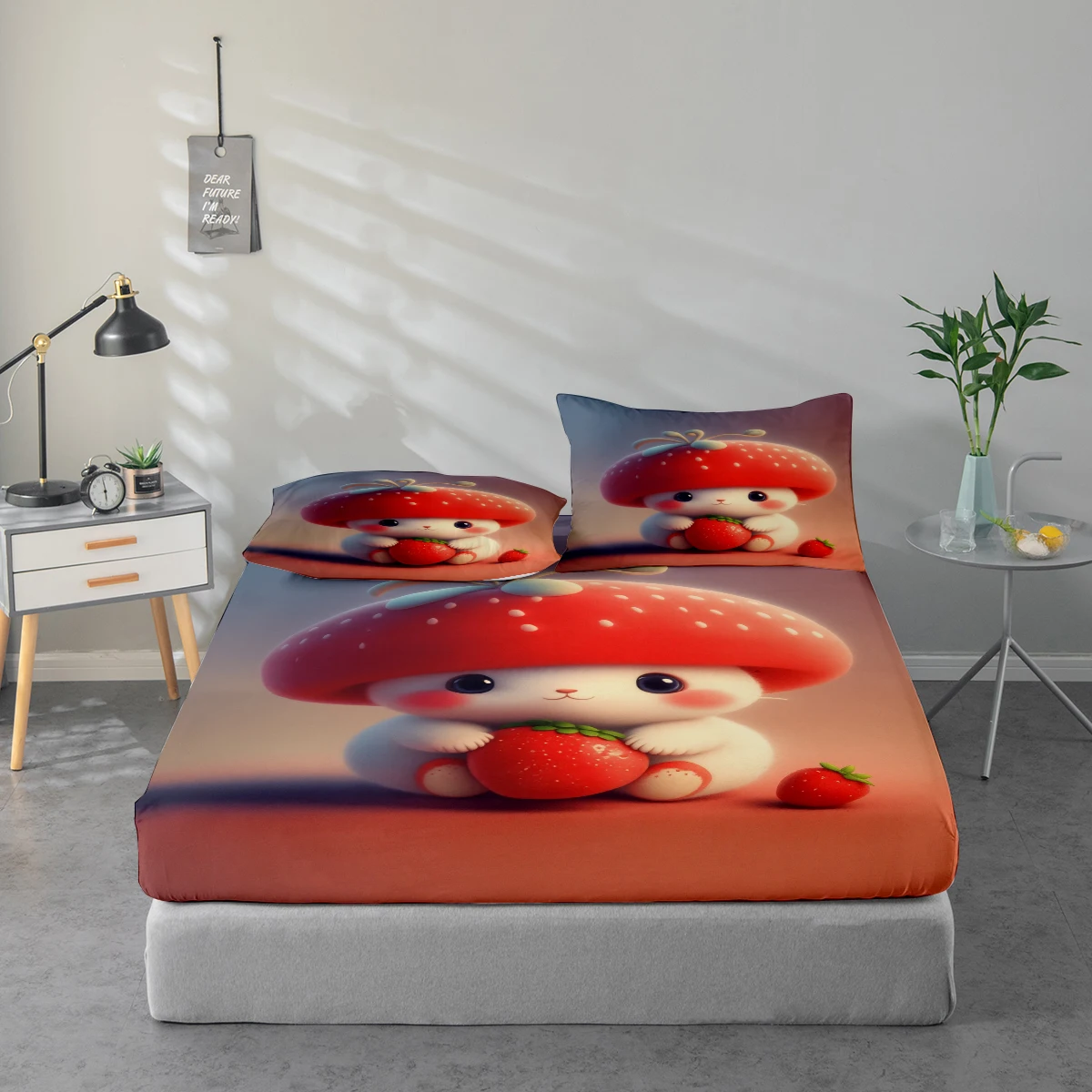 Cute Strawberry Pattern Printed Bed Sheet Set, Mattress Protector and Pillowcase Combination. High-Definition Printed Bed Sheet Set Includes 1 Fitted Sheet + 1 or 2 Pillowcases (60*100cm and 72*132cm Are 1 Pillowcase, the Rest of the Sizes Are 2 Pillowcases). Suitable for Bedroom and Guest Room, Ultra-Soft Polyester Bedding, Machine Washable, Can Be Used in All Seasons