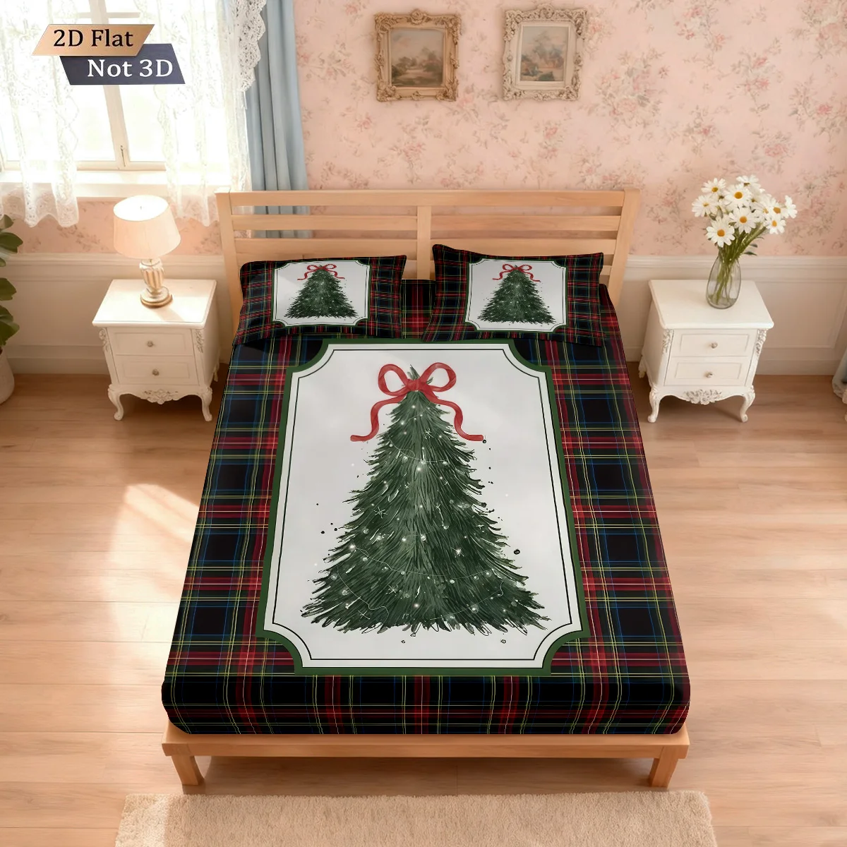 3pcs Merry Christmas cartoon Christmas tree plaid print coreless bedsheet set multiple size soft bed covers bedroom bedding