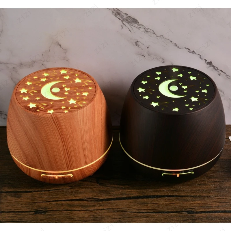 Remote Control Hollow Wood Grain Star and Moon Series Essential Oil Diffuser Portable Humidifying Aromatherapy Machine