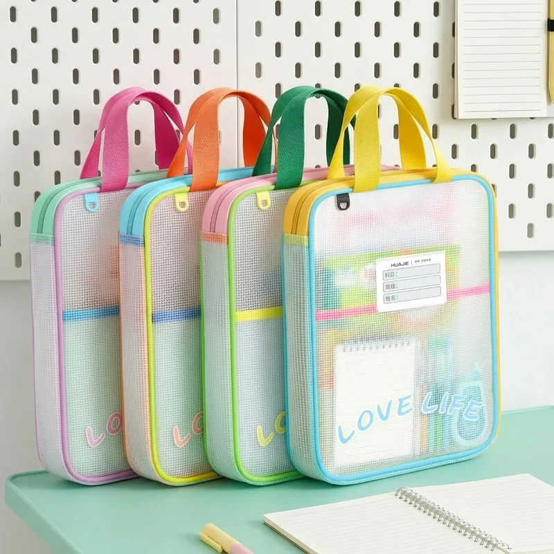 8pcs Zipper Mesh Bags, 3 Sizes, Zipper Mesh Bags, Waterproof Clear Travel Bags, Office Supplies Document Bags With Zipper