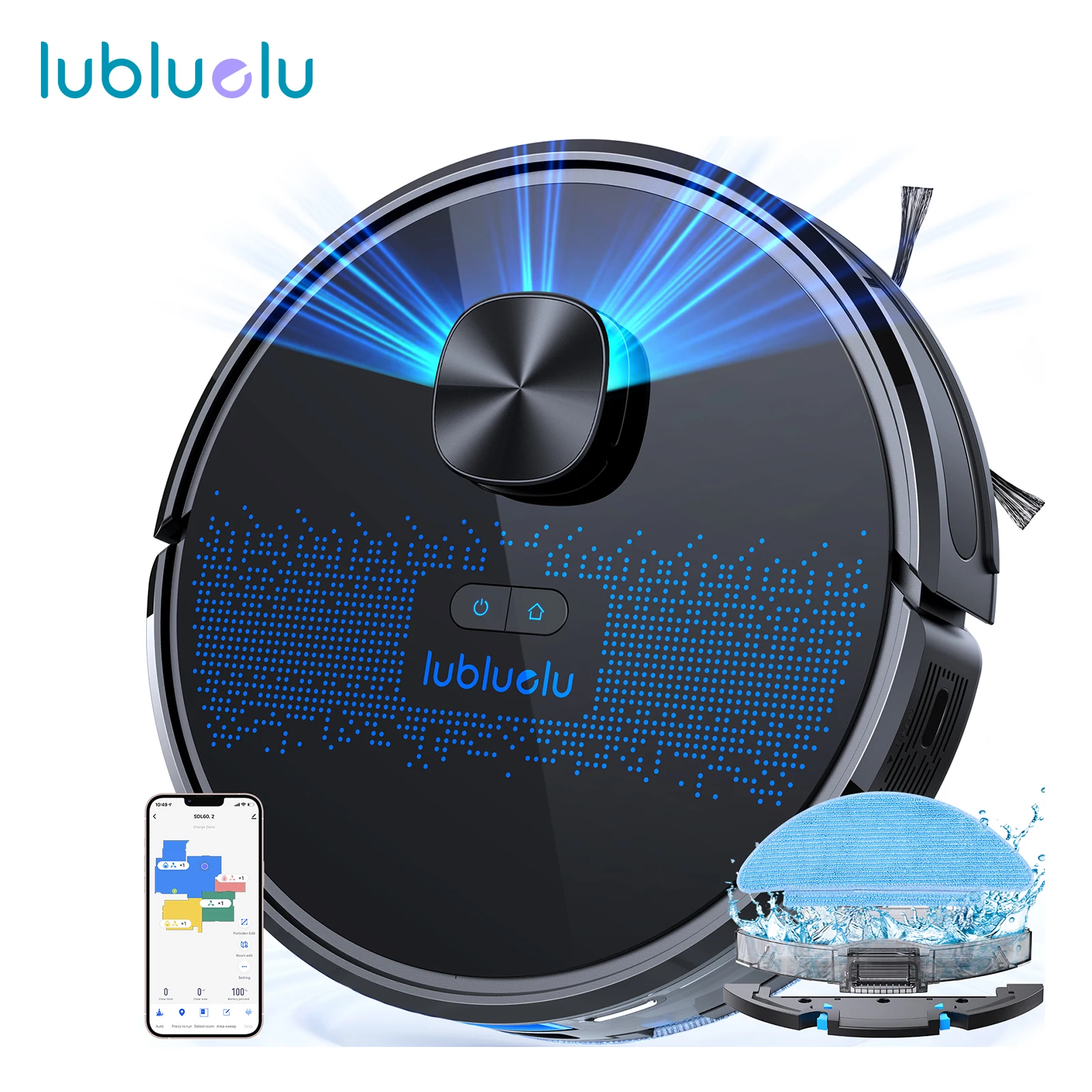 Lubluelu SL60D Robot Vacuum and Mop Combo - 4500Pa Suction, 150Mins Runtime, Quiet Operation, 10 No-Go Zones For Pet Hair Carpet