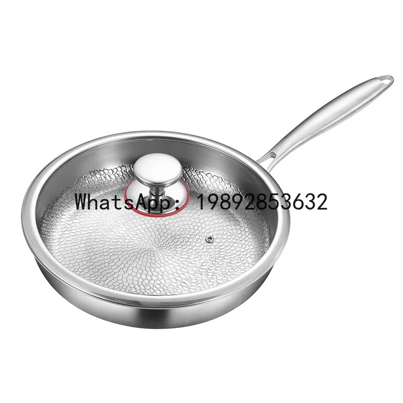 Hammered finish flat-bottom frying pan - pure titanium stainless steel tri-ply construction - heavy-duty non-stick for home use