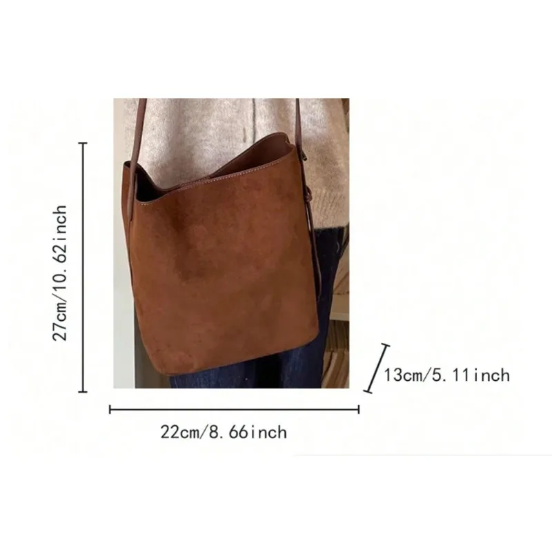Korean Niche INS Style Suede Vintage Leopard Print Bucket Bag - Versatile Shoulder & Crossbody Tote with Detachable Pouch