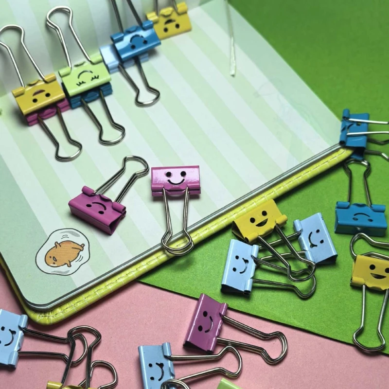 50pcs Long Tail Clips Binder Smiley Pattern Flipchart Binder School Office Data Book Organizer Handle Foldable Office Supplies