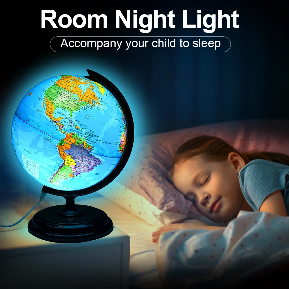Sphere Diameter 20cm Full Pure English World Globe HD Printed 360° Student Teaching LED Light Lamp Globe ABS Globe Office Crafts