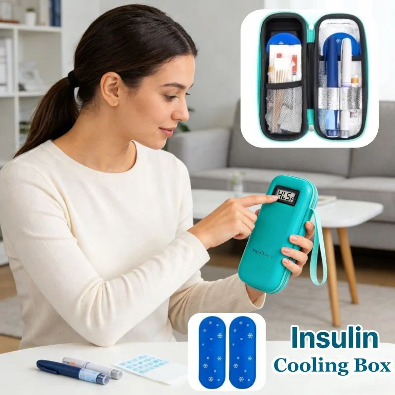 Insulin Cooler Travel Case Protable Fridge Real-Time Temp Display with 2 Reusable Ice Packs Refrigerator for Diabetic Supplies