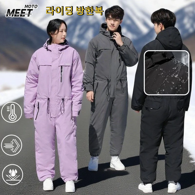 Winter Thick Fleece Jumpsuit for Men Women Cold Resistant Motorcycle Riding Suit Outdoor Waterproof Windproof Ski Suit 방한복