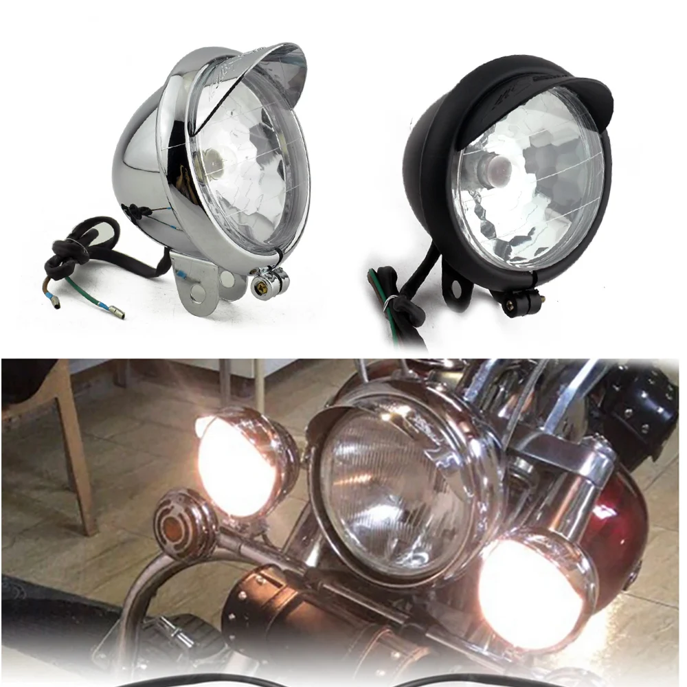 12V Universal Moto Headlamp Chrome /BlackABS Motorcycle Fog Lights Headlight Lamp Motorcycle Spare Parts Lighting