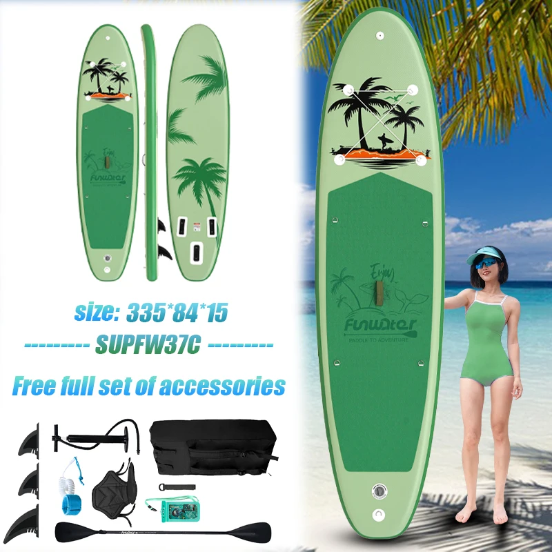 Funwater Inflatable SUP Board 11' 335cm Green Palm Tree Camera Mount Kayak Seat Hybrid Kit Nature Paddle Board SUPFW37C